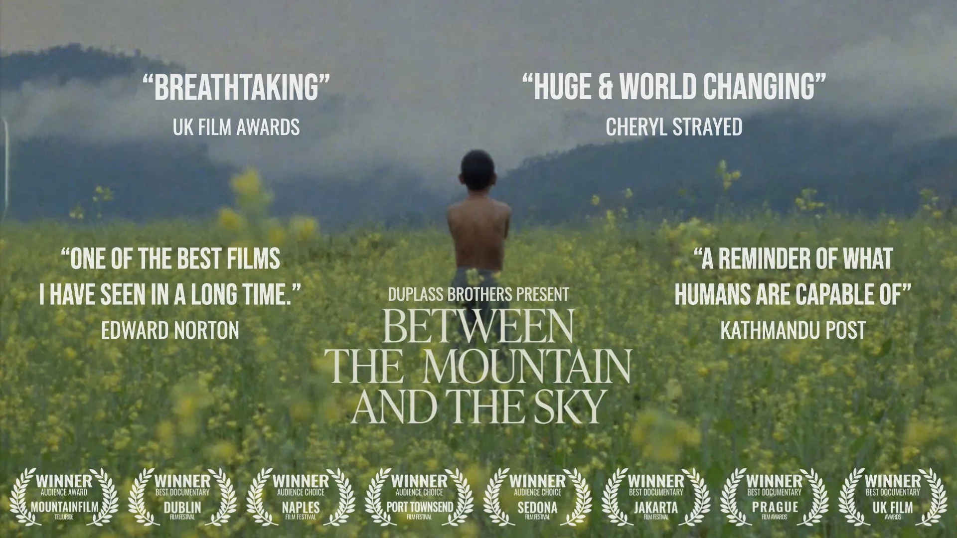 Between the Mountain and the Sky follows Maggie Doyne and Top Malla over twenty years as they build a home that becomes a family to more than fifty orphaned children in Nepal. At the height of this journey, after CNN Hero recognition, an unimaginable loss shatters everything — deepening the story into a meditation on grief, resilience, and the power of love to heal.